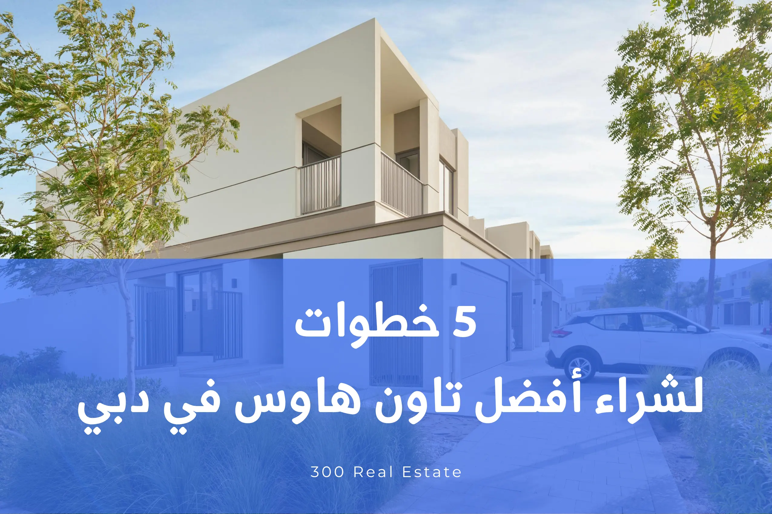 شراء تاون هاوس في دبي قرار كبير يجمع بين الراحة العائلية والفرص الاستثمارية المربحة. هذا الدليل العملي يقدم لك خمس خطوات واضحة ومفصلة تساعدك على اختيار التاون هاوس الأمثل سواء كنت تبحث عن منزل للعائلة أو عقار للاستثمار. يتضمن المقال نصائح عملية حول الموقع، الميزانية، التمويل، معاينة العقار، والإجراءات القانونية، مع تركيز على أهم فرص إستثمار عقاري في سوق عقارات دبي مثل تاون هاوس في دبي، عقارات دبي، استثمار عقاري في دبي، تمويل عقاري، ومجتمعات سكنية متميزة. كما نذكر في النهاية كيف يمكن لفريق 300 Real Estate الوسيط العقاري الأكثر نمواً في دبي أن يسهّل عليك كل خطوة.